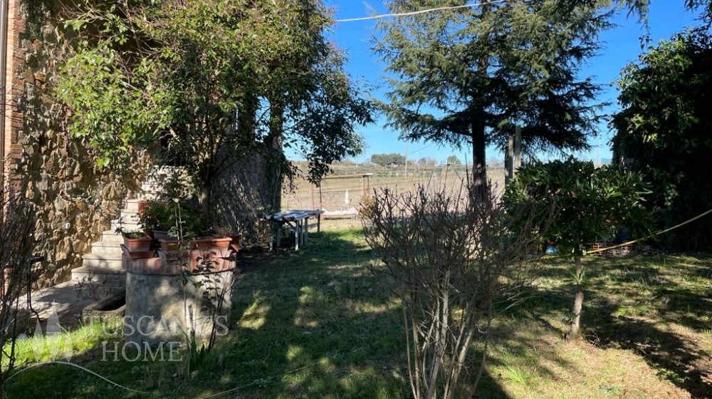 The farmhouse is surrounded by a garden with a barbecue area and a